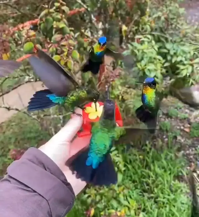Admira de cerca estas aves mágicas en un santuario natural rodeado de flores nativas. Un espectáculo de color y vida.