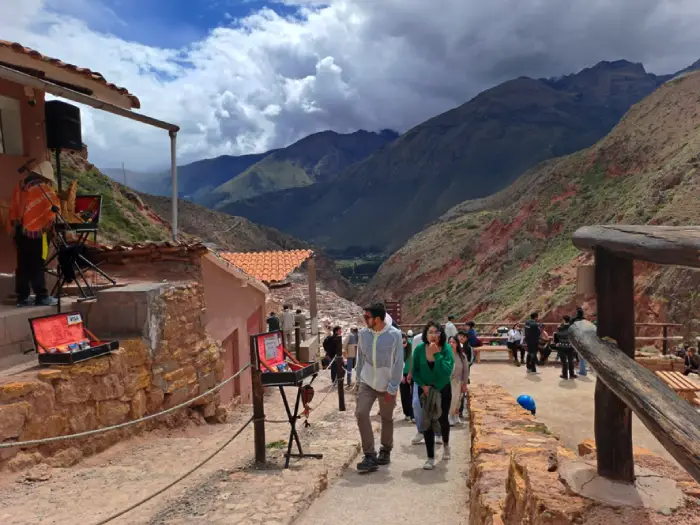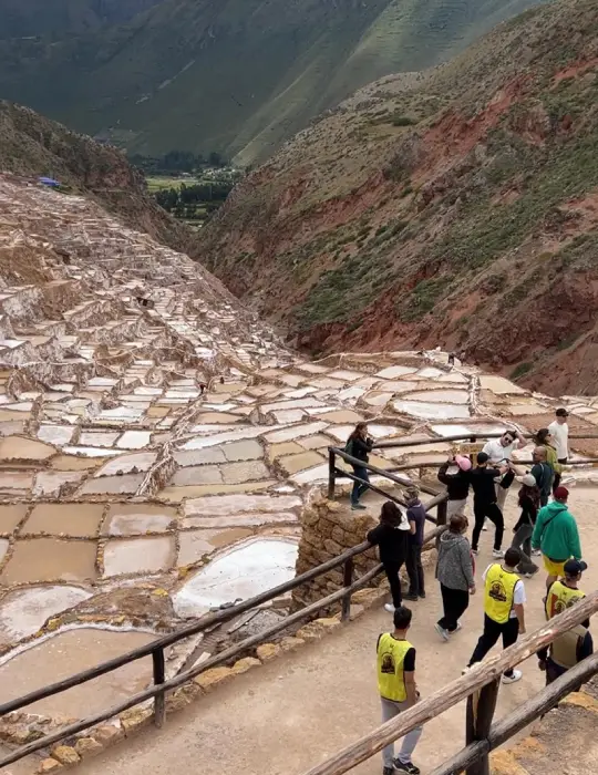 - Parada en Maras – Caminamos entre las milenarias salineras, aún activas, que tiñen la montaña de blanco y revelan una herencia viva.